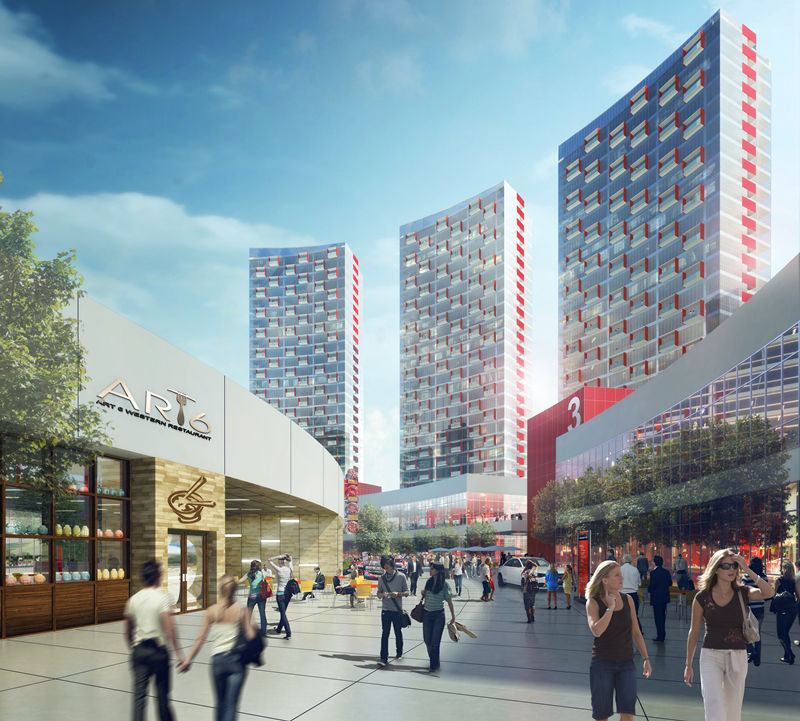 項目打造了讓人心動(dòng)的三個(gè)主題中心:高端大氣的汽車(chē)博覽中心展場(chǎng),位于寺瓦路入口層的中心商圈處,巧妙的通過(guò)坡道聯(lián)系地下的展示空間,成為集聚人氣、立體車(chē)展、新聞發(fā)布、汽車(chē)拍賣(mài)等活動(dòng)的極佳場(chǎng)所,在該處對中心商圈的內圈展示界面一覽無(wú)余,強烈的空間圍合感,激發(fā)身在其中的人們君臨天下的聯(lián)想。