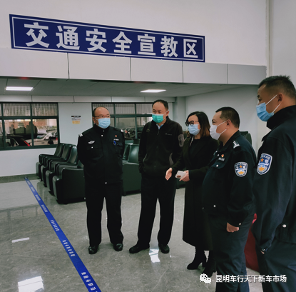 為深入貫徹全國公安工作會(huì )議上的重要講話(huà)精神,落實(shí)黨中央、國務(wù)院深化“放管服”改革、優(yōu)化營(yíng)商環(huán)境部署要求,進(jìn)一步深化相關(guān)改革措施, 2020年10月19日上午11時(shí),昆明市車(chē)管所副所長(cháng)全俊鵬、檢驗科副科長(cháng)土劍、計算機中心主任許俊洪及楊云峰民警深入著(zhù)力打造“只進(jìn)一扇門(mén)、最多跑一次”的綜合服務(wù)體“車(chē)行天下機動(dòng)車(chē)登記服務(wù)站”檢查指導工作, 由車(chē)行天下機動(dòng)車(chē)登記服務(wù)站總經(jīng)理杜麗平陪同檢查工作,并實(shí)地調研機動(dòng)車(chē)查險及業(yè)務(wù)窗口服務(wù)工作。